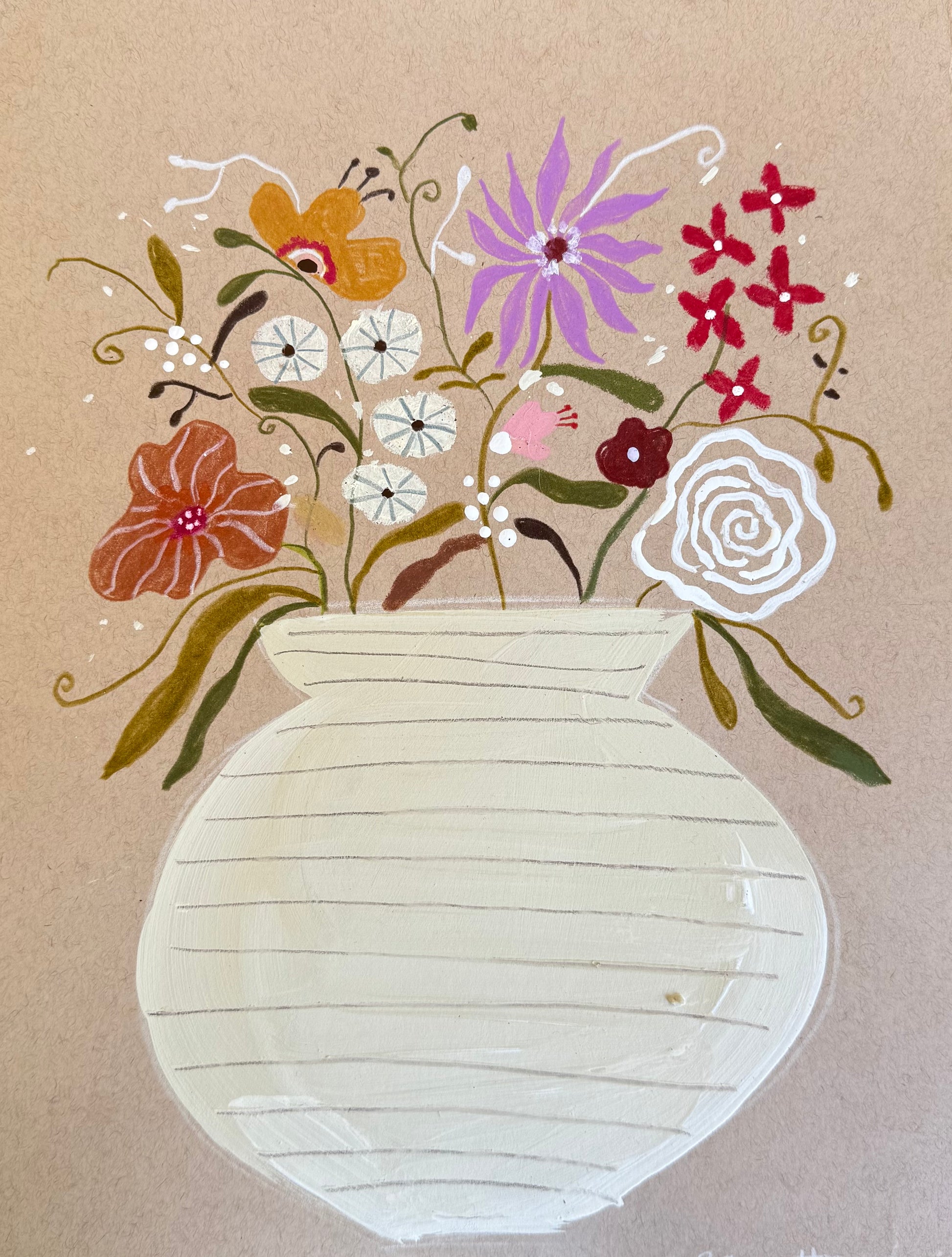 Acrylic, oil pastel and colored pencil on tan mixed media paper