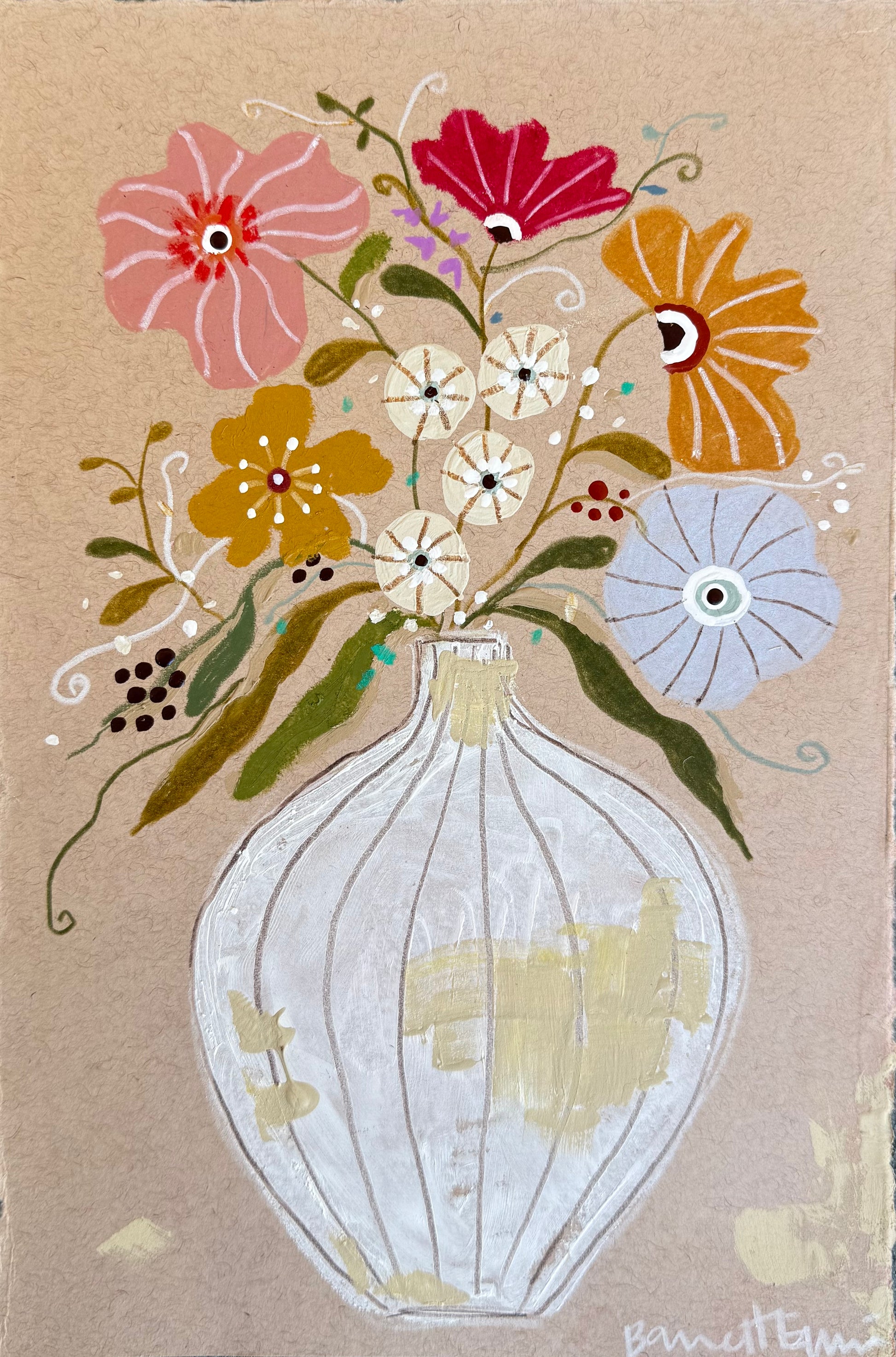 Acrylic, oil pastel and colored pencil on tan mixed media paper
